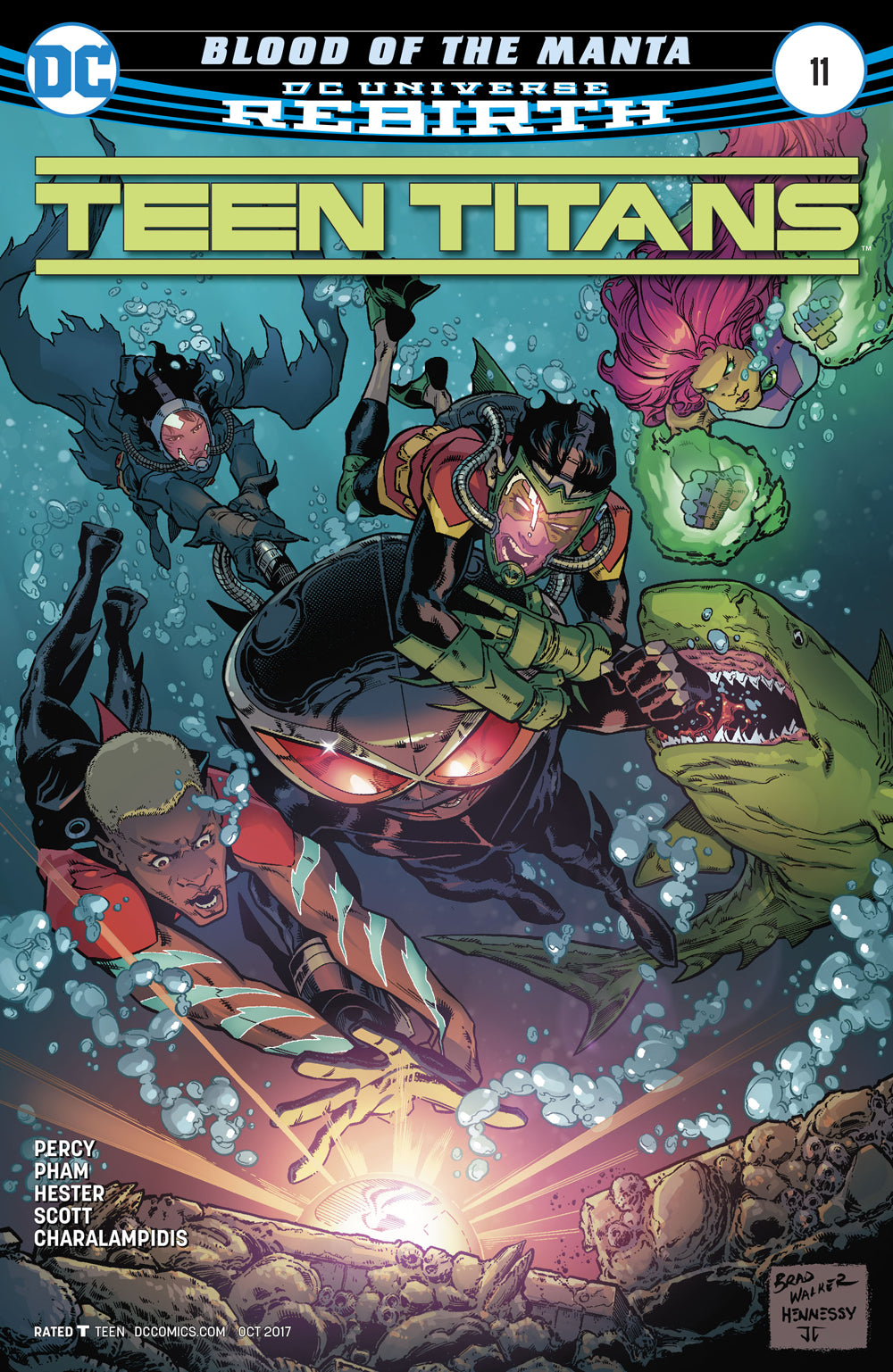 "BLOOD OF THE MANTA" part three! Everything comes crashing down when Black Manta reveals his son's true origin, and the shock is almost too much for Jackson to bear! Meanwhile, the Teen Titans have tracked Black Manta down-but is it too little, too late? Will the Teen Titans save their new friend...or make a new enemy?