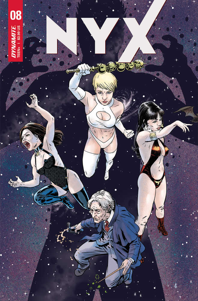 Nyx has been trying to save her siblings from the genetic curse of their demonic and human sides -a curse that could cause their utter destruction! But now a crisis looms as her brother, Unison, comes into his cosmic powers and threatens to consume all of reality! Nyx must team up with her partners from the swinging '70s - the Vampirella and Pantha of that far-out era - to stop the end of everything. But if it comes down to it, can she kill her own brother? She'll have to if she's going to save the universe itself!