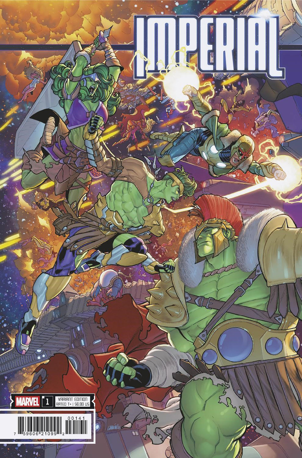 JONATHAN HICKMAN, FEDERICO VICENTINI AND IBAN COELLO TAKE ON THE UNIVERSE! A sweeping Marvel cosmic event! Imperial is a story of intrigue, mysteries and war, which takes place against the backdrop of the formation of new galactic order in the Marvel Universe. Featuring HULKS, BLACK PANTHERS, NOVAS, GUARDIANS and COSMIC KINGS and QUEENS. It's the must-read book of the summer! Rated T+