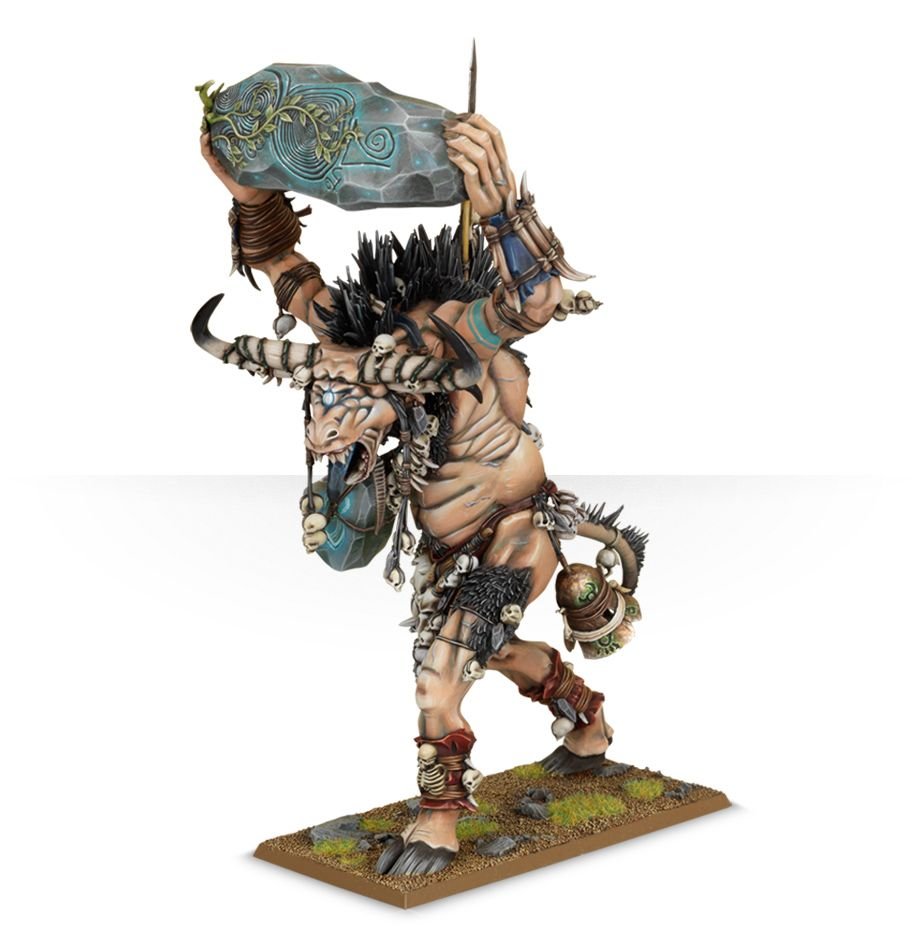 The Cygor is a tall model that will stand out in any Beastmen collection. Standing on two bovine feet, its enormous muscular body is covered in straps and skull trophies of varying sizes. Two horns sprout sideways from its head, and spiked fur clusters around the crest of its spine and a large bell hangs from its waist. This set includes plenty of optional extras, including a desecrated boulder for the Cygor to throw, two different heads, plus plenty of skulls, skeletons and bones to adorn the belt and base of the model.