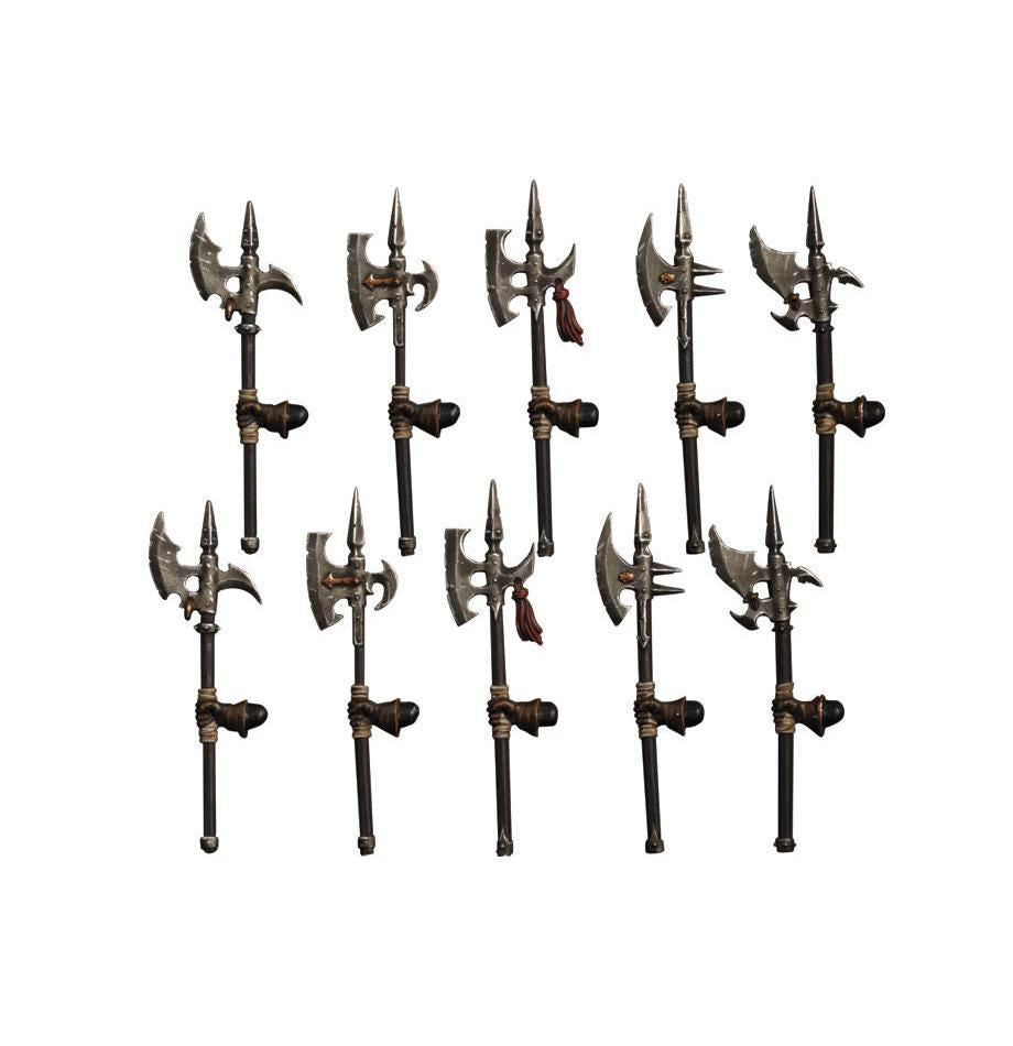 Chaos Warriors can carry a variety of weapons in their quest to destroy the Old World. This set contains 10 finely detailed resin Halberds, including two each of five designs, which can be used to arm your Chaos Warriors.