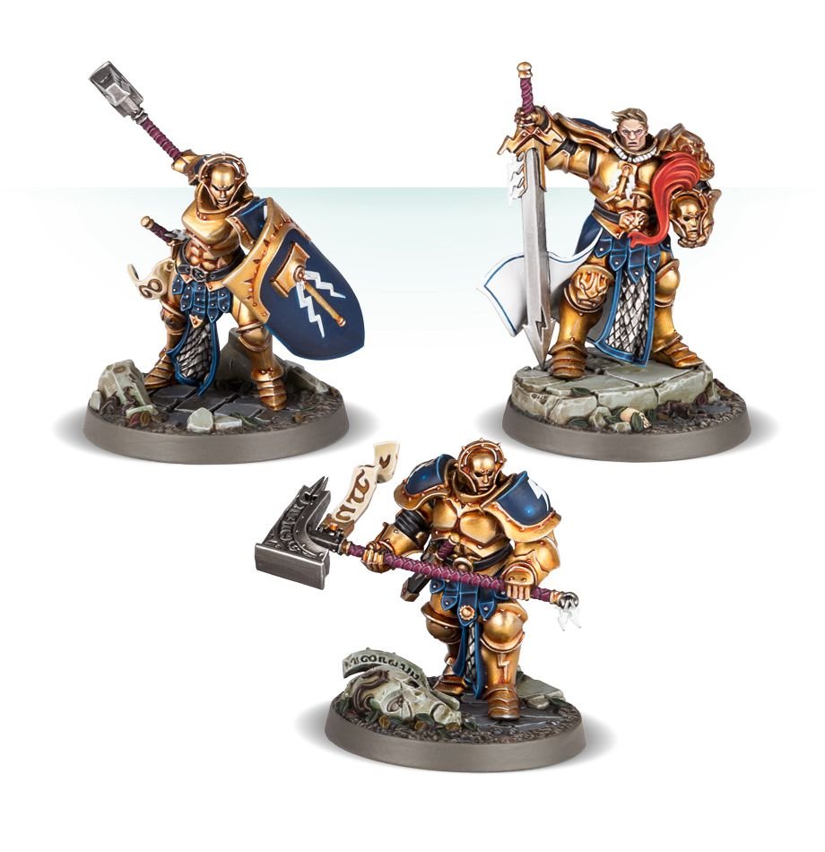 In this kit you’ll find 3 Stormcast Eternals, led by Severin Steelheart: