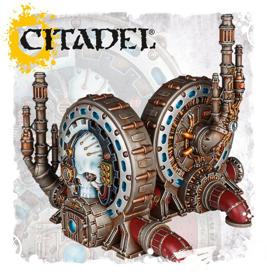 Designed and deployed to provide additional power on the battlefield, the Haemotrope Reactor is an indispensable tool for armies wishing to unleash ever-more destructive waves of plasma upon their enemies. An imposing structure, understood fully by few, it is used to bolster the defensive capabilities of the Void Shield Generator – or amplify the already intimidating destructive capacity of the Plasma Obliterator. In a pinch, the Haemotrope Reactor can be used as cover; this can be a terrible decision however, as the cowering warrior opens himself up to the potential of horrific injuries resulting from power leaks…