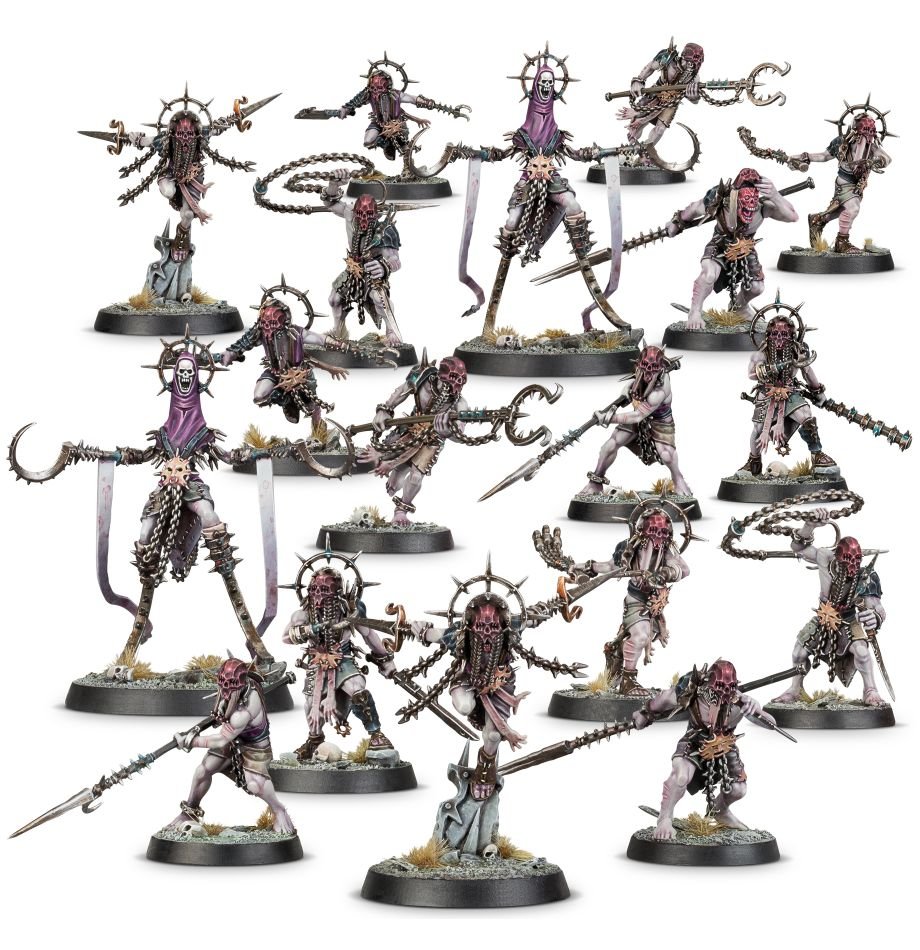 The island of Tzlid, drifting ever closer to the Shyish Nadir, is home to the cannibal tribes of the Unmade. The self-mutilation performed by these pain worshippers is horrifying to behold, and their leaders are visions from the darkest of nightmares.