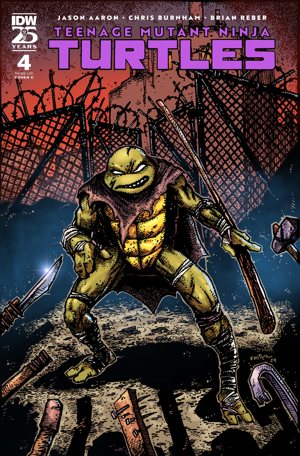 Chris Burnham returns to art duties this issue as we finally learn the fate of Donatello! Trapped in a mutant zoo and forced to fight rich men looking for a thrill, his mind is still broken since last we saw him. As mysterious forces gather against him, can Donnie gather himself to defeat these enemies and set himself free?Superstar writer Jason Aaron continues his exploration of the individual Teenage Mutant Ninja Turtles, setting the stage for their reunion.